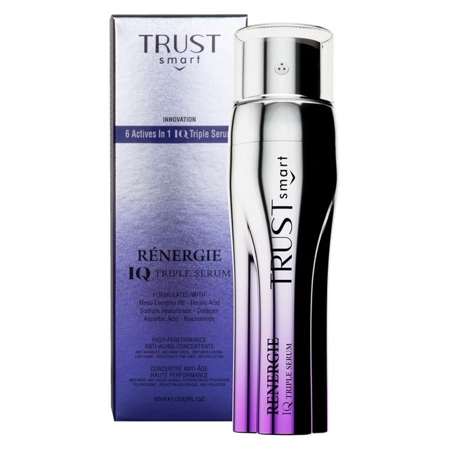 سرم سهگانه هوشمند تراست برای اولین بار به عنوان قویترین محصول حاوی سه نوع سرم روشنکننده، ضد چروک و جوانساز پوست در قالب یک محصول طراحی شده است. سرم روشنکننده حاوی ترکیبات فعال اصلی ویتامین C و نیاسینآمید است که به طور چشمگیری به رفع لکهای پوست و جلوگیری از تیرگی پوست ناشی از عوامل مختلف کمک میکند. این محصول با داشتن ترکیبات فعال فرولیکاسید و مزوکمپلکس آر ای در فرمولاسیون سرم جوانساز خود، توانایی بینظیری برای ساخت سلولهای جدید پوستی و بازسازی و جوانسازی پوست دارد. مزوکمپلکس مورد استفاده در فرمولاسیون این سرم، با داشتن انواع ترکیبات فعال پپتیدی، آمینواسیدها، هیالورونیکاسید، مواد معدنی و انواع ویتامینها، تاثیر منحصر به فردی در بازسازی و جوانسازی پوست دارد. کلاژن و هیالورونیکاسید مورد استفاده در فرمولاسیون سرم ضد چروک هم بعد از استفاده از سرم بر روی پوست تاثیر همافزایی با مزوکمپلکس و فرولیک در آبرسانی، رفع چین و چروکها و افزایش استحکام پوست دارد. بنابراین سرم سهگانه هوشمند تراست با داشتن سه نوع سرم با ترکیبات فعال آبرسان، افزایشدهنده استحکام پوست، جوانکننده و ضد چروک و روشن کننده پوست، به عنوان محصولی متفاوت و بینظیر به بازار معرفی گردید.